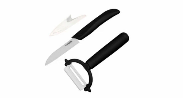 mycera 美瓷 陶瓷水果刀套装两件套 瓜果刀 削皮器(黑色)TA01B